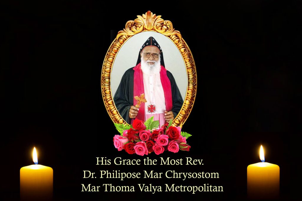 His Grace the Most Rev Dr Philipose Mar Chrysostom Mar Thoma Valya Metropolitan passed away at 1:15 AM on May 5, 2021 at Fellowship Mission Hospital Kumbanad.